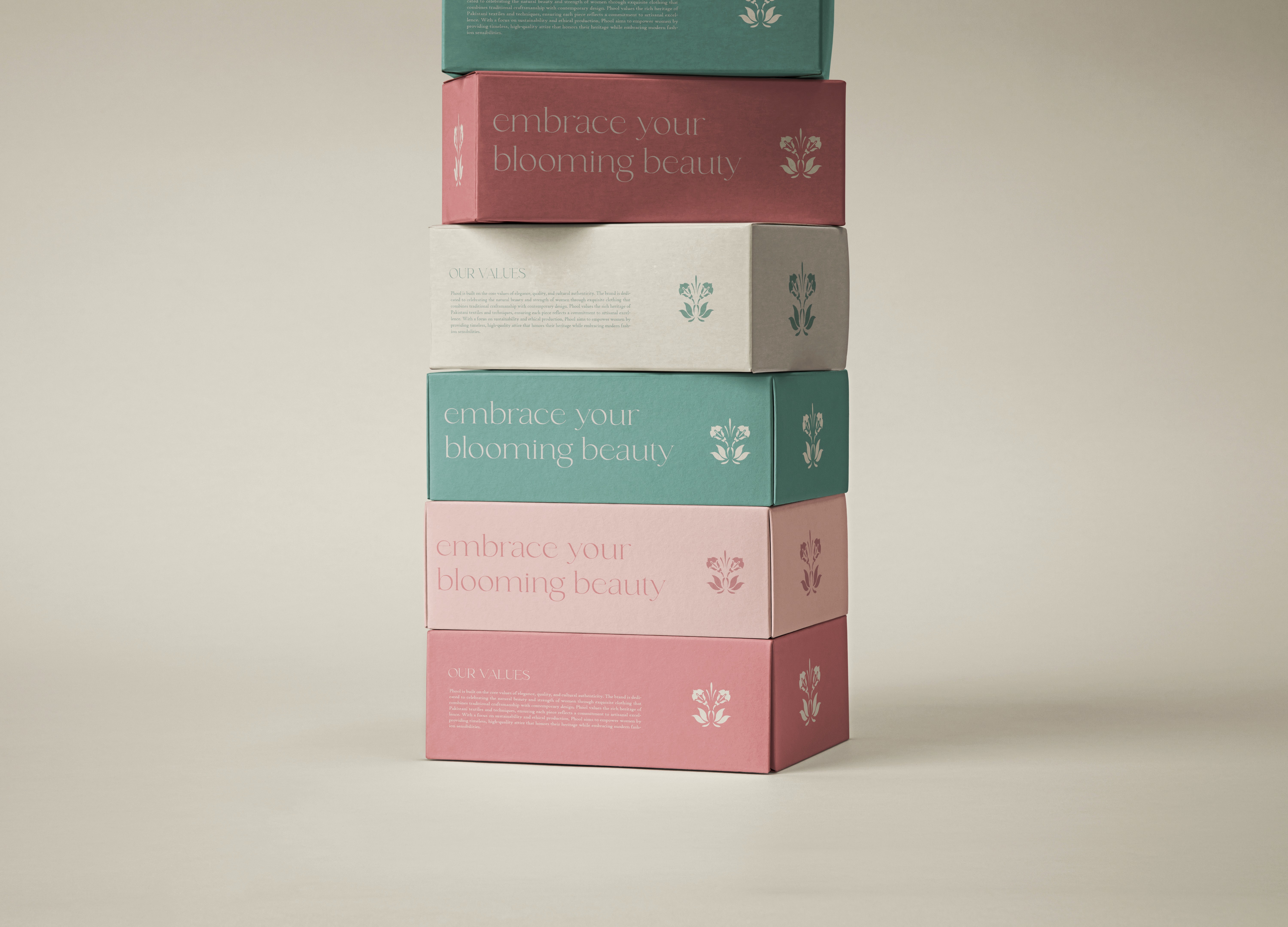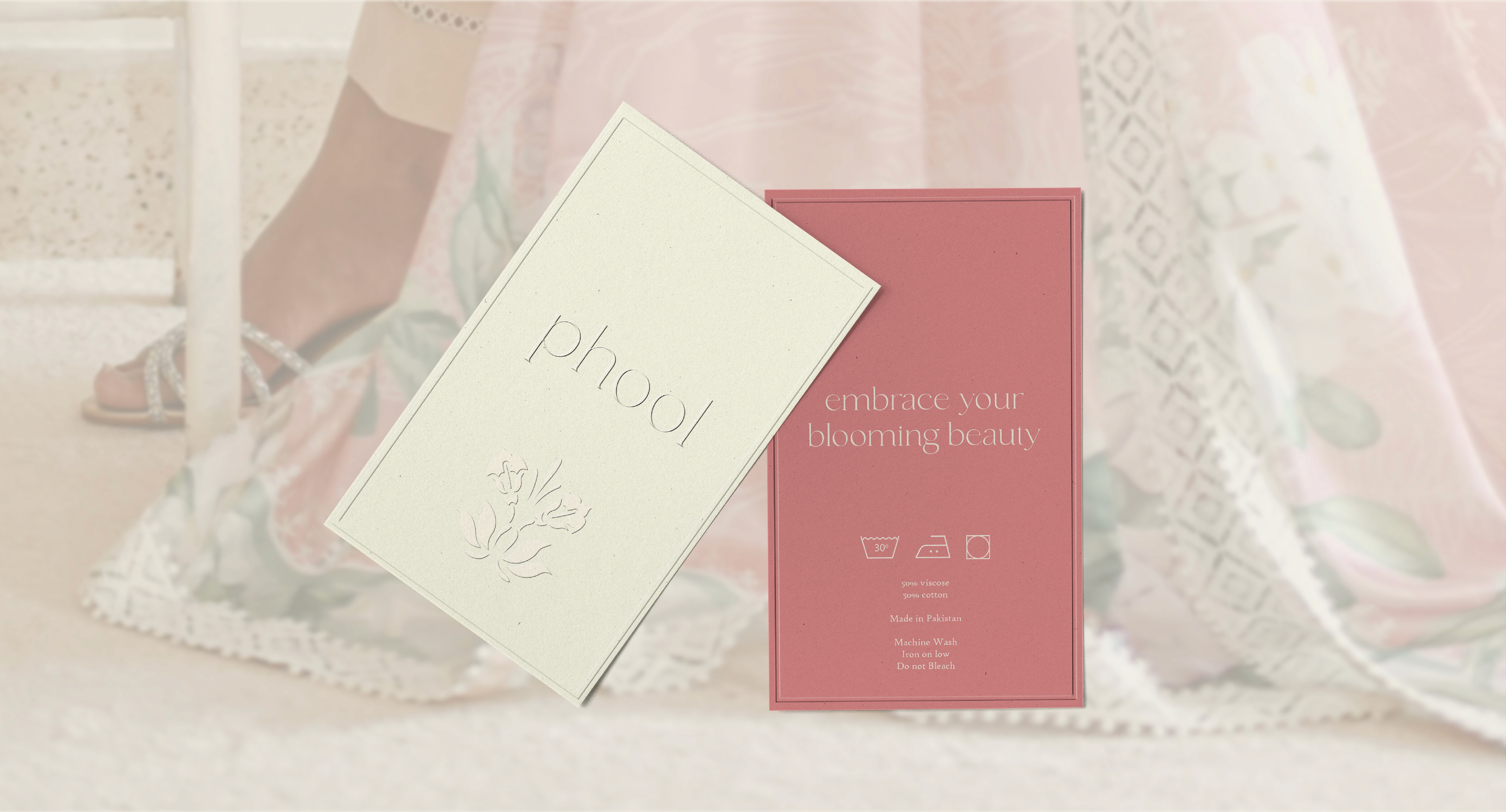 Phool was created for Pakistani women who embody elegance and grace. Soft pastels, custom floral patterns, and a signature floral logomark were used to beautifully merge tradition with modern style.